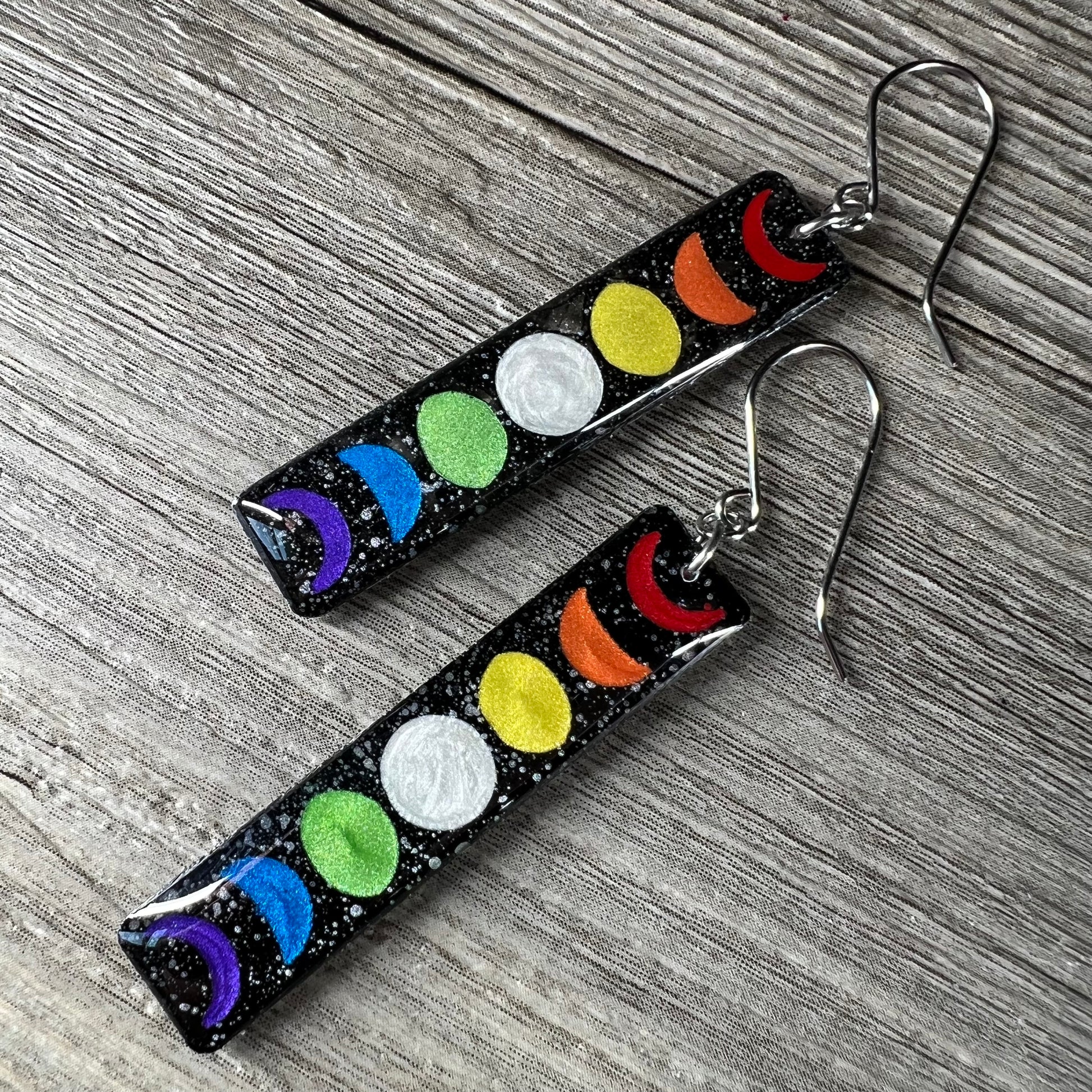 These lightweight mixed-media dangle earrings are miniature works of wearable art, cut directly from my original double-sided abstract, gestural ink-on-polypropylene paper paintings. Each pair captures fluid movement, layered color, and subtle metallic and iridescent pigments, taking every set to another level of one of a kind.